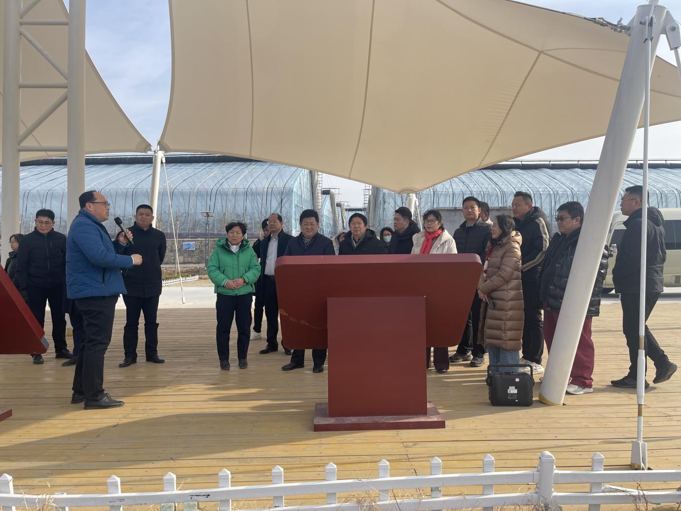 调研组一行先后到小水党建共同体、中小水蒜黄大棚、龙湾水乡乡村振兴示范片区开展现场研学,沿路观摩了蒜根收集交易市场及“沁雪园”冰雪欢乐大世界项目,听取了相关负责人项目情况介绍。