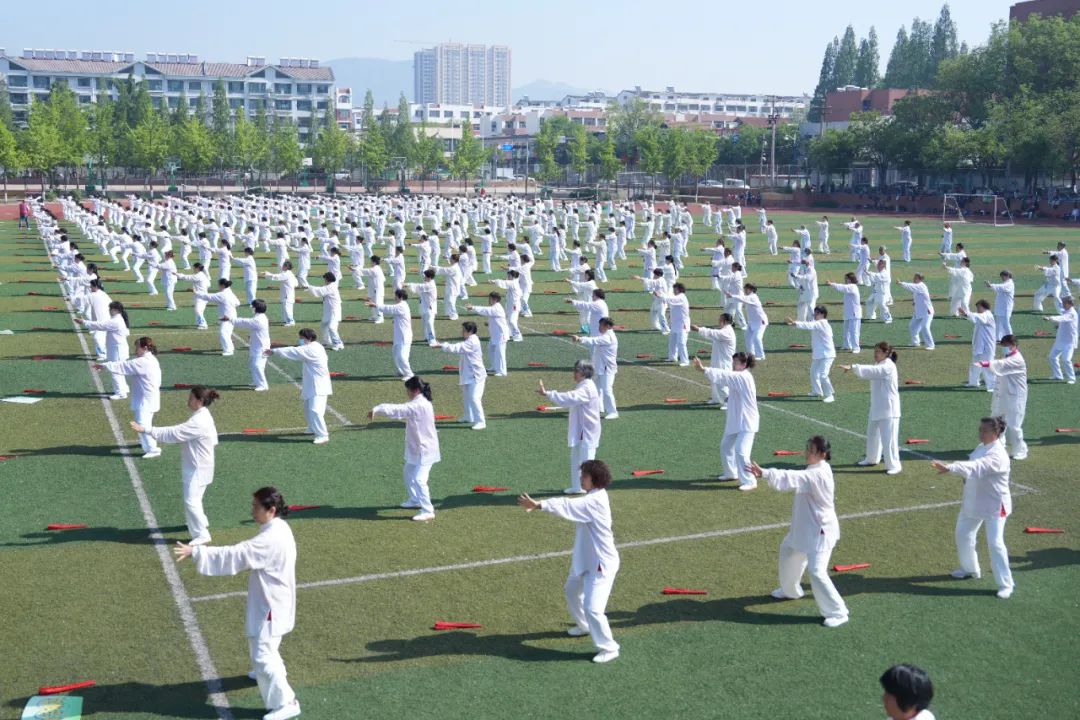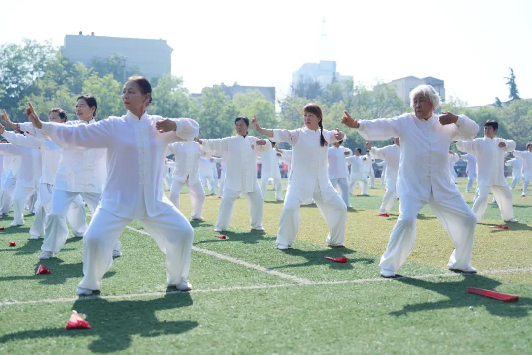 沂源融媒讯:为丰富老年群体文体生活,展示老年人健康、乐观、向上的精神风貌,近日,沂源县教育和体育局联合县老年体协举行沂源县第十四届全民健身运动会·全国老年人太极拳健身推广展示大联动启动仪式暨“琛蓝杯”庆五·一健身展演活动,城区各活动站文体爱好者1000余人参加。
